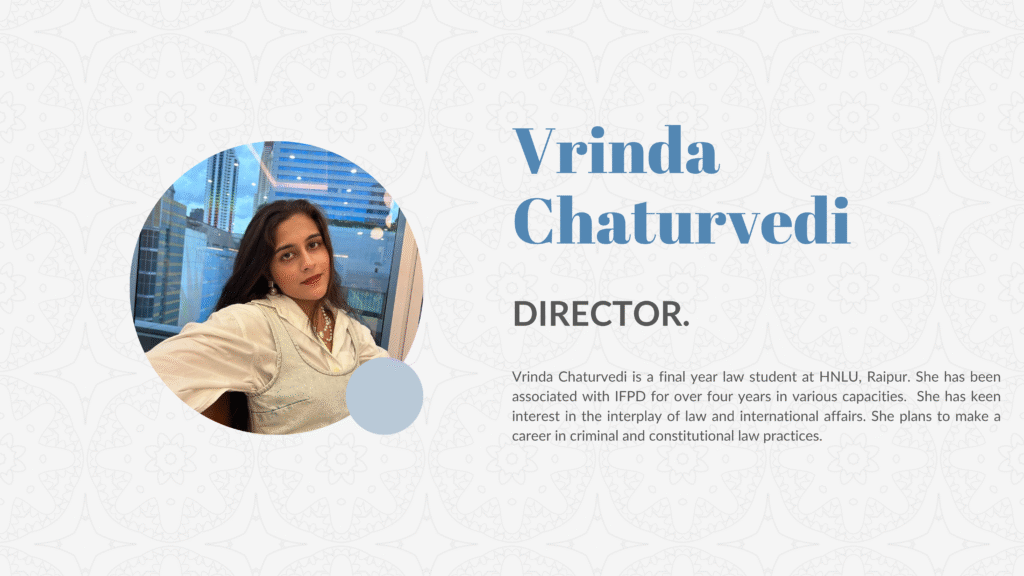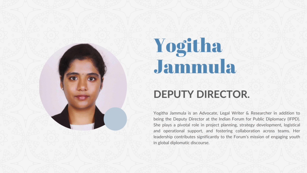 Indian Forum for Public Diplomacy (IFPD) is a not-for-profit, non-partisan, youth-driven advocacy forum that advocates civilian-led strategic culture in India, with the aim of aiding foreign policy thinking through young academia. We are a youth advocacy forum focused on creating a world that recognizes the nuances of strategic and diplomatic challenges through the influential impact of public diplomacy and people-to-people relations. By putting foreign policy in the landscape of people, the forum engages to bring forth initiatives to drive foreign policy and reform through national and international citizens, encourage civilian-led strategic studies, and enhance people to people relations through research, opinion, dialogue, discourse, and debate to catalyse a new consensus to the world and enhance India’s Public Diplomacy.